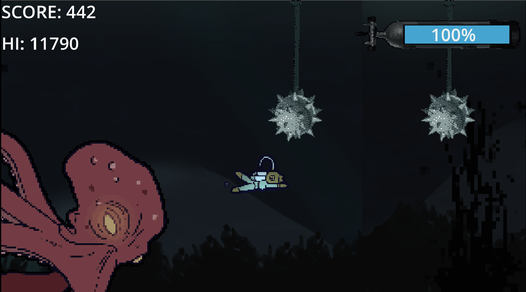 Escape the kraken and evade the mines while taking care of your oxygen levels in this simple yet addictive endless runner.